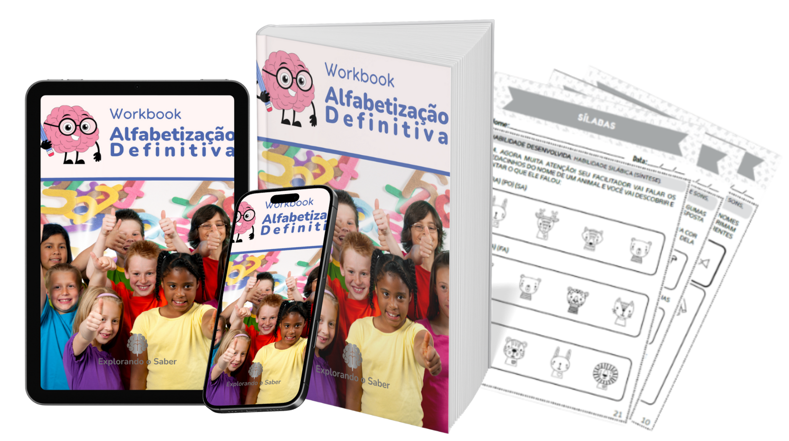 Isso porque você vai ter um conteúdo organizado para proporcionar com uma base correta de entendimento a aprendizagem! O Workbook vai ajudar a criança a praticar de A a Z tudo o que ela precisa saber para começar o processo de alfabetização!